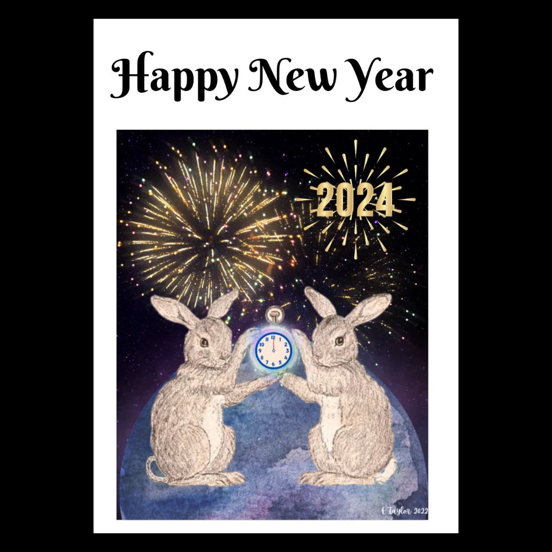 Source : www.dreamstime.comHappy New Year 2024 Card Rabbits Fireworks | eBay